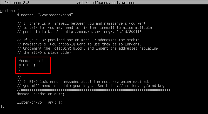 Lo siguiente es configurar los reenviadores, para ello modificaremos el fichero /etc/bind/named.conf.options