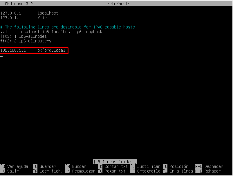 En el final del fichero añadimos las dos líneas que se muestra en la captura: