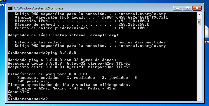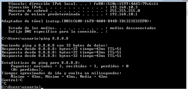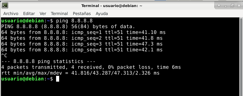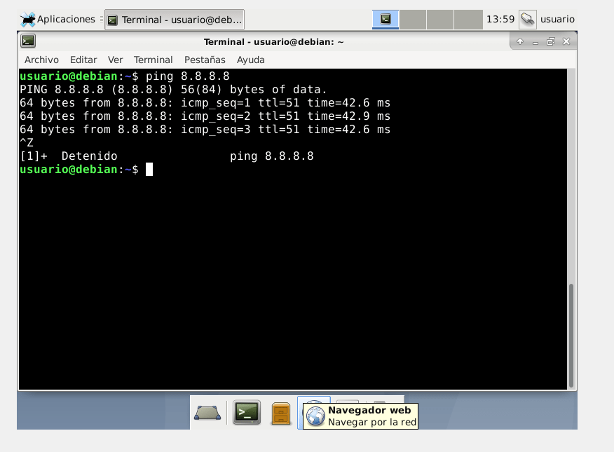 Una vez puesta las máquinas en red, debemos de comprobar si nuestro propio servidor tiene acceso a internet y luego comprobar si comunica con nuestras máquinas clientes para ello efectuaremos el comando ping 8.8.8.8 (para saber si tenemos internet) y el comando ping «ipde máquina cliente» (para comprobar si estamos en red con nuestros clientes.)