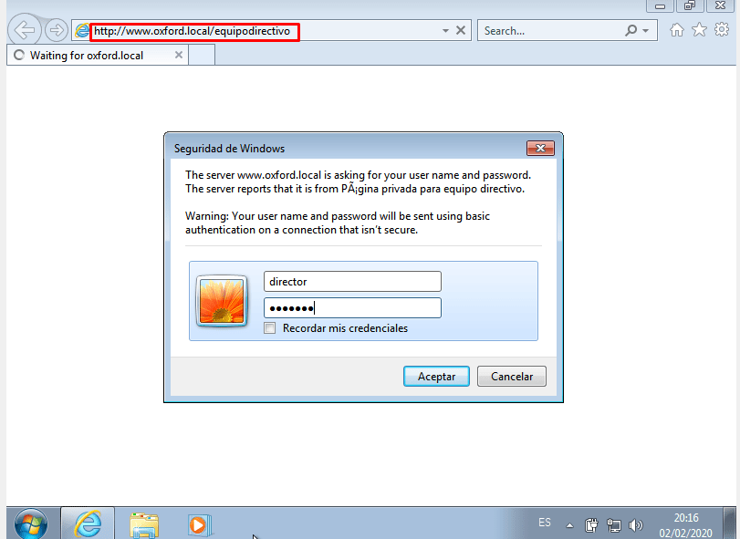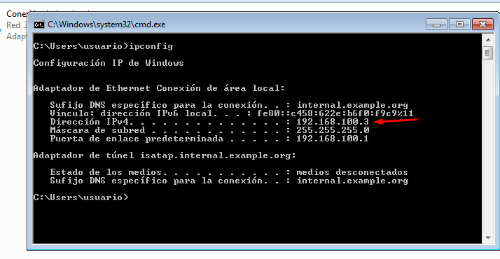 Cliente (Windows) –> Adaptador red interna.