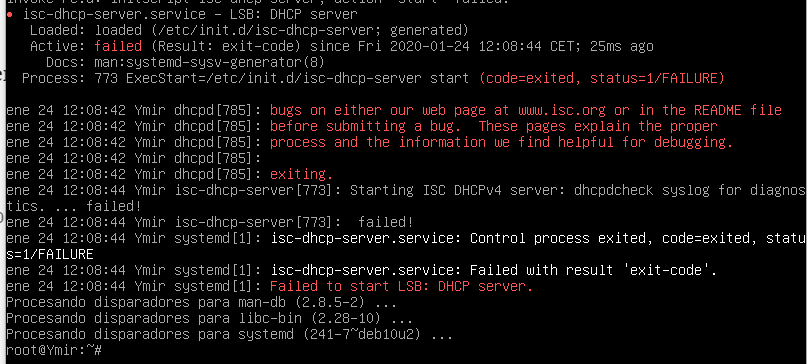 Reiniciamos el servicio con systemctl restart isc-dhcp-server.service