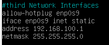 Iniciamos la máquina servidora y configuramos el fichero /etc/network/interfaces y añadimos las siguientes líneas para configurar la nueva tarjeta de red que hemos instalado anteriormente.