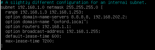 nano /etc/dhcp/dhcpd.conf