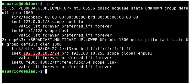 Ahora procederemos a hacer un reservado de ip a nuestra máquina cliente de Debian, para ello debemos de saber la MAC de la tarjeta de red de nuestra máquina cliente.