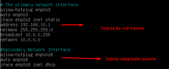 Debo de añadir que la configuración que usaremos para la primera tarjeta de red interna, será la misma que hicimos en la entrada «NAT EN LINUX»