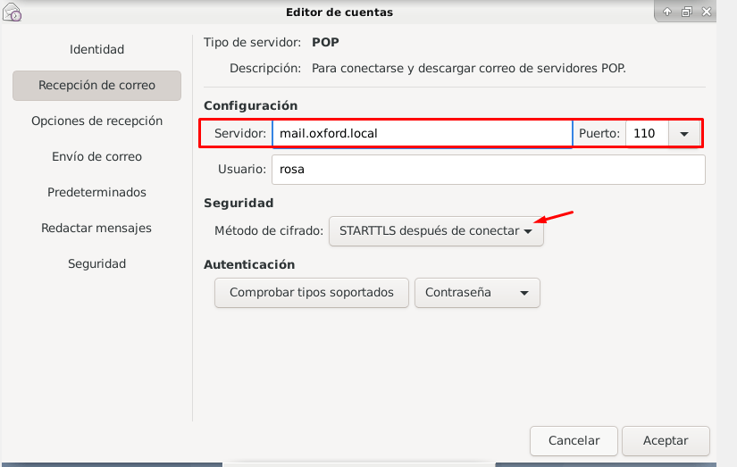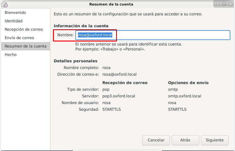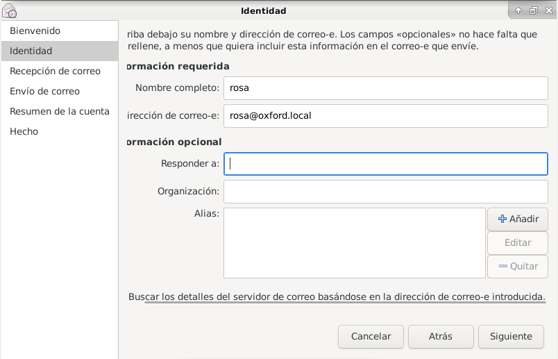 Ahora procederemos a configurar la cuenta de rosa en el evolution: