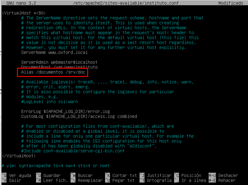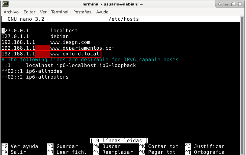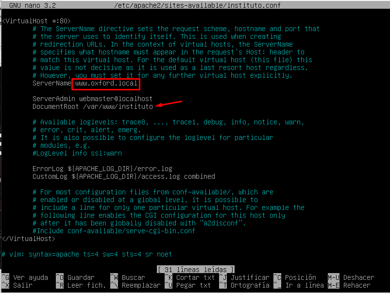 Al nuevo fichero le modificamos las siguientes líneas:
